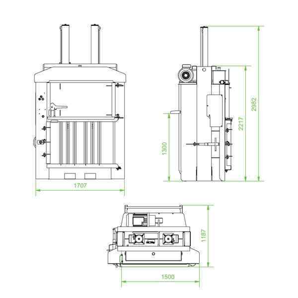 The 400 mill size recycling baler has been designed for businesses that want to produce mill size bales for full-capacity loads for shipping containers and general transportation (the most significant recycling cost). With a 25 tonne press force and capable of achieving bales of up to 450kg, this waste baler is a popular choice with recyclers and industrial users alike.
