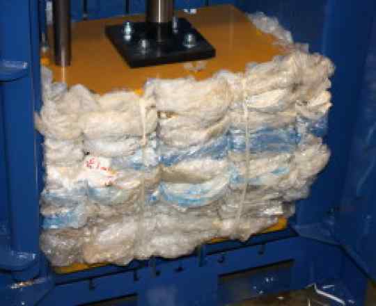 Balers are generally made of steel with a hydraulic ram to compress the waste.